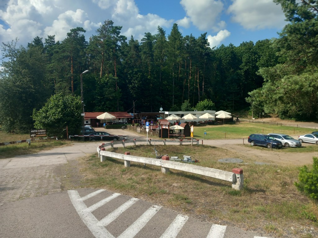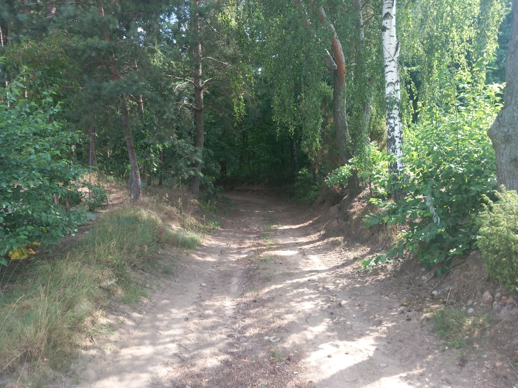 Idziemy wzdłuż niego czymś w rodzaju bulwaru/promenady, po drodze mijamy kilka knajpek oraz plażę miejską. Po jakimś czasie nasza trasa oddala się troszkę od jeziora i podchodzimy pod górkę w stronę lasu. Dalej mijamy po ośrodki wypoczynkowe Danusia i Danusia 2.