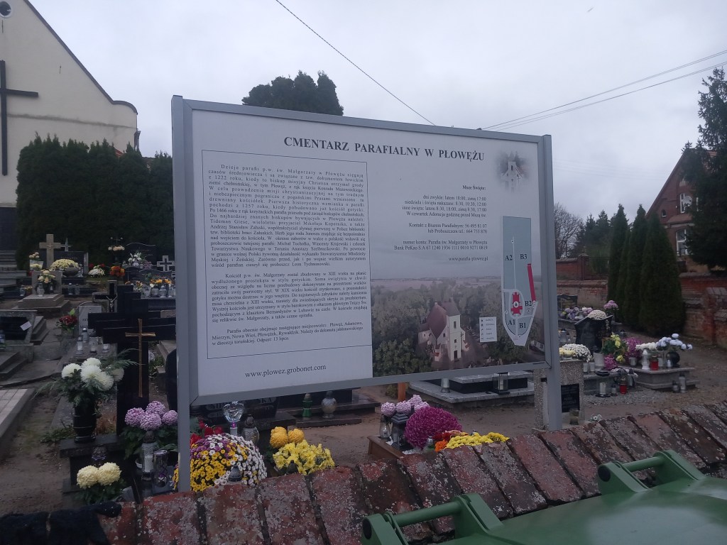 Z Ostrowitego kierujemy się na północny zachód wspomnianym szlakiem. Zaraz za dworcem po prawej stronie mijamy ruiny z kominem, prawdopodobnie pozostałości po dawnym PGRze. Po dwóch kilometrach dochodzimy do zabudowań wsi Rywałdzik (istnieje również wieś Rywałd, gdzie znajduje się Sanktuarium Maryjne, w którym przez kilka dni był internowany Kardynał Stefan Wyszyński). W Rywałdziku mijamy skrzyżowanie i idziemy dalej do Wsi Płowęż. Tam mamy kościół pw. Św. Małgorzaty wraz z przykościelnym cmentarzem.