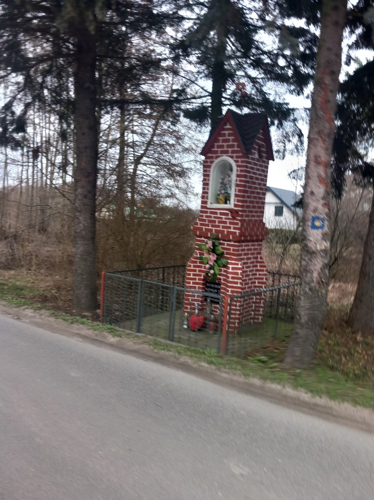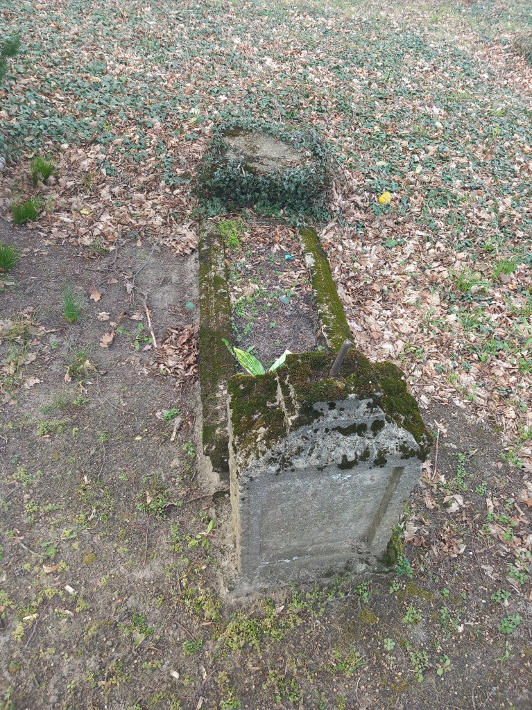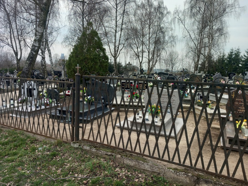 Po zejściu na dół idziemy dalej asfaltową drogą, mijamy skrzyżowanie z jedną drogą i skręcamy w następną w prawo. Po około dwustu metrach po prawej stronie mijamy teren po dawnym cmentarzu ewangelickim. Do dziś zachowało się kilka grobów.