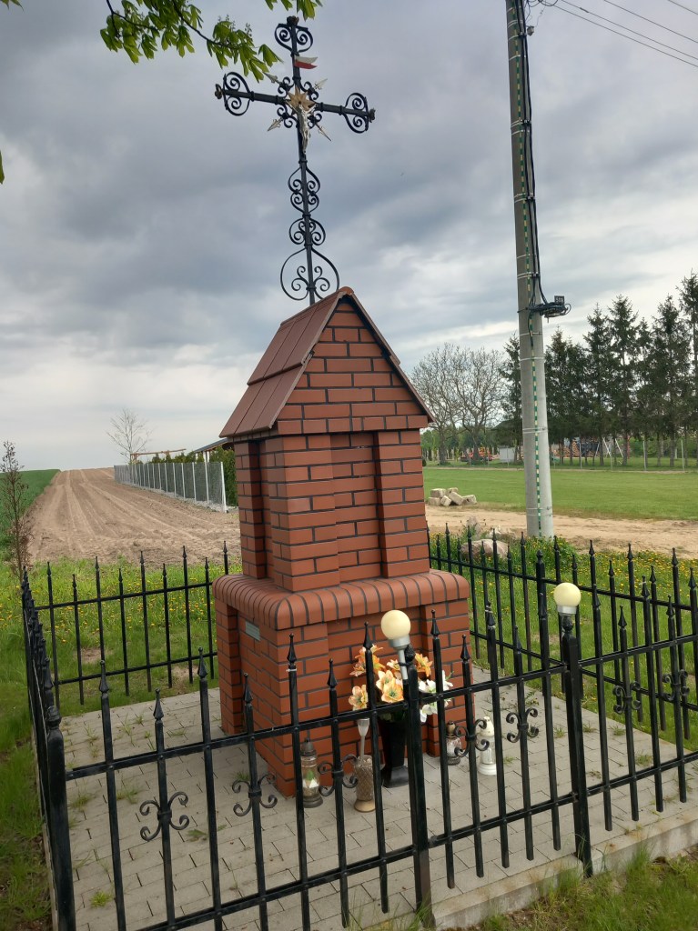 Stylowa ceglana kapliczka podobna do tej, którą mieliśmy w poprzednim poście w Szczuce. Tylko ta jest zamurowana, jakby brakowało tam zawartości 😀 Znajduje się w Płonku.
