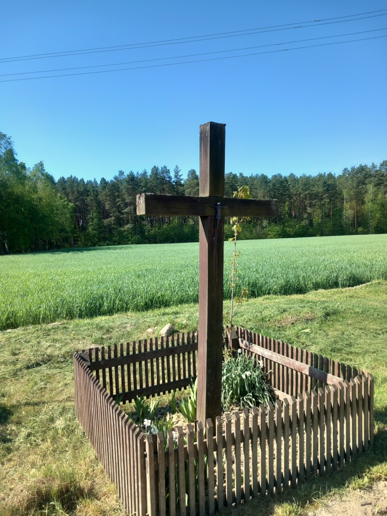 Trzeci z rzędu obiekt z Łąkorza. Tym razem drewniany krzyż.