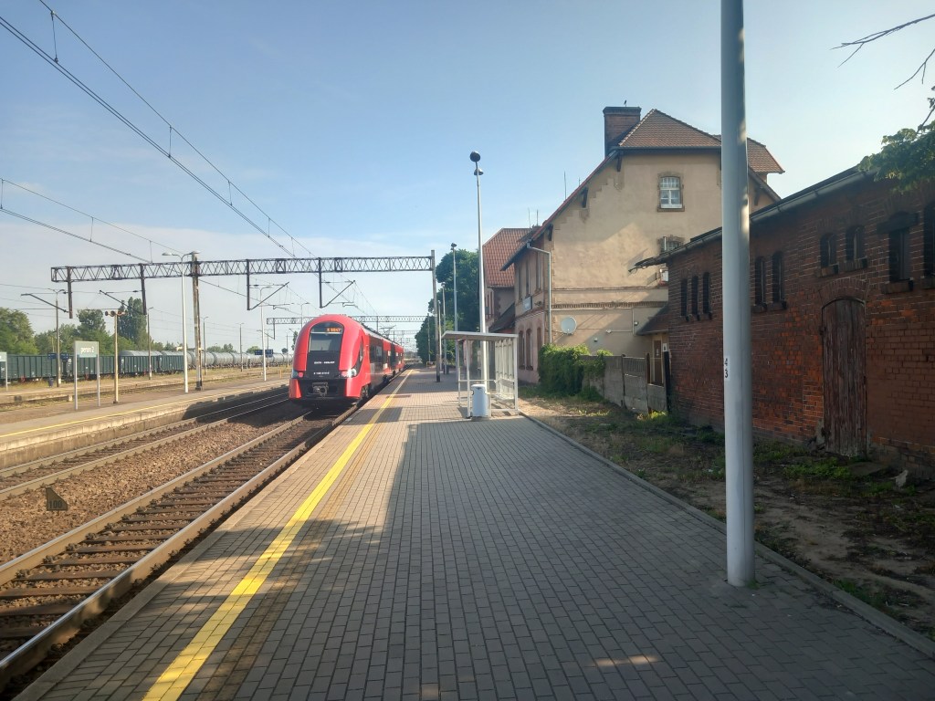 Zatem bez zbędnej zwłoki, pogoda ładna, słońce świeci, ale też nie jest za gorąco (tak do 22 stopni), więc warunki idealne. Jedziemy Arrivką linią kolejową nr 208 do Grudziądza, gdzie mamy 15 minut na przesiadkę na kolejną do Laskowic Pomorskich. Tu również linia ma ten numer. Na stacji (wbrew obiegowej opinii, która zapewne bierze się z faktu, że są tu aż 3 perony i spory ruch osobowy, o towarowym nie wspominając; Laskowice Pomorskie są „zaledwie” wsią sołecką, nawet nie gminną) przesiadamy się do pociągu PolRegio w stronę Trójmiasta. Tym razem linia nosi numer 131, jest ona najdłuższa w Polsce, prowadzi z Chorzowa Batory niedaleko Katowic do Tczewa. Przy okazji jest też jedną z najbardziej obciążonych na sieci, jeśli chodzi o ruch towarowy, gdyż łączy kopalnie na Śląsku z portami w Trójmieście. Warto jeszcze wspomnieć, że w branży kolejowej nosi ona kryptonim „Magistrala Węglowa”. To tyle na ten temat, zainteresowanych odsyłam do Internetu i wielu pozycji książkowych (linia między innymi doczekała się swojej monografii 😮 )