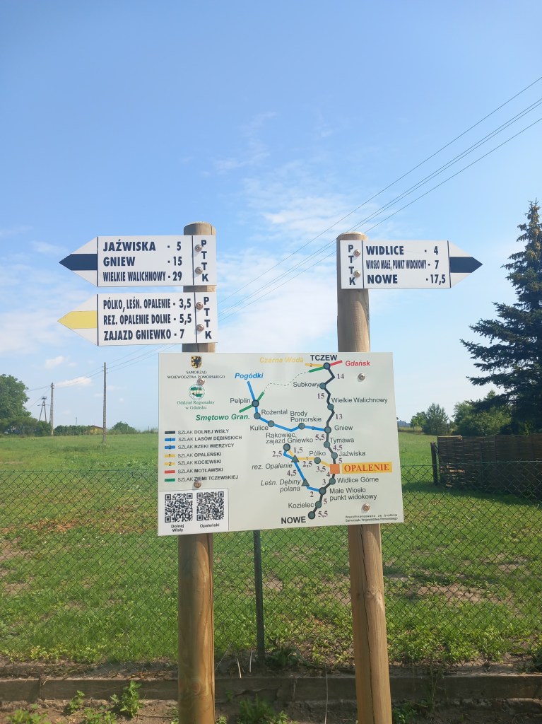 Po raz kolejny przekraczamy granice. Dosłownie i w przenośni. W przenośni, bo odwiedzamy nowe tereny, które można powiedzieć „rozdziewiczamy”; a dosłownie, ponieważ byliśmy już w województwach: kujawsko-pomorskim, warmińsko-mazurskim, mazowieckim (co prawda przez chwilę, ale zawsze: https://maronwedruje.com/2024/05/26/wokol-komina-11-z-okalewka-trasa-prawie-v-ksztaltna-przez-okalewo-i-skrwilno-do-rypina/). A tym razem docieramy do pomorskiego. I za prawdę powiadam Wam, że będziemy tu dłużej niż w województwie z tablicami rejestracyjnymi zaczynającymi się na literę „W”.