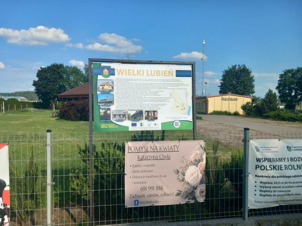 Ogólnie od tablicy z nazwą wsi do jej centrum jest prawie 5 kilometrów, więc jest to spora miejscowość. Dalej idąc na południe znajdują się: Mątawy z kościółkiem pw. Najświętszej Maryi Panny Królowej Polski oraz kolejnymi chatkami osadników; Wielkie Zajączkowo, gdzie znajduje się następny dawny cmentarz, i wreszcie Wielki Lubień, gdzie dochodzi do nas główna wojewódzka numer 402. Na skrzyżowaniu stoi również niewielki kościół pw. Świętego Jakuba Apostoła. Skręcamy tam w lewo, wraz z muszelką oraz znakami ścieżki rowerowej. Droga zbliża się do Wisły, oraz do wału, w końcu prowadzi on w odległości kilku metrów. Tu również mamy do wyboru marsz asfaltem lub zarośniętym nasypem. Po kolejnych (prawie) trzech kilometrach dochodzimy do Dragacza, gdzie przebiega droga krajowa numer 16. Skręcamy w nią w lewo do Mostu im. Bronisława Malinowskiego na Wiśle. Przed nami po lewej stronie ukazuje piękna panorama Grudziądza ze słynnymi spichlerzami i wieżą zamkową. Po minięciu przeprawy (która ma ponad kilometr długości, swojego czasu byłą najdłuższą w Polsce) po lewej stronie mamy śmieszny obrazek. Najpierw są tablice z nazwą stacji Grudziądz Śródmieście, co by sugerowało, że znajdujemy się w centrum miasta. Jednak nic bardziej mylnego, bo za chwilę mamy zielone tablice z nazwą Grudziądz. Czyli w tym przypadku śródmieście leży poza granicami miasta 😀 W ogóle nie wiadomo po co powstał ten przystanek, znajduje się on w odległości niecałego kilometra od głównej stacji. Ale widać mieszka tam ktoś ważny, gdyż w ostatnich latach poza tym zostały otwarty przystanek Grudziądz Tuszewo. Trzeba tu również nadmienić, że wspomniany wyżej Dragacz i znajdująca się tam stacja również była zamknięta dla ruchu osobowego przez ładnych kilkanaście lat, jednak od zeszłego roku ponownie jest otwarta. W sumie dobrze, bo jest to wieś gminna i trochę wstyd żeby nie miało stacji. A jeszcze większy wstyd, to mieć stację, ale nie móc z niej korzystać 😀