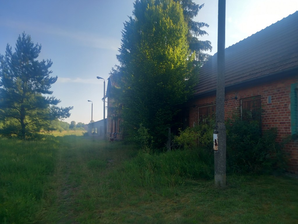 Wychodzimy z Brodnicy w kierunku wschodnim ulicą Lidzbarską. Mijamy po lewej stronie piekarnię, następnie prywatny staw, dalej droga skręca lekko w prawo. Za zakrętem my również skręcamy, tylko w lewo w ulicę Boczną. Początkowe domki dalej zamieniają się w ogródki działkowe z obu stron. Po mniej więcej kilometrze docieramy do toru linii kolejowej nr 33, jednak go nie przekraczamy. Przed przejazdem wybieramy wąską ścieżkę w lewo i dochodzimy do żelaznego mostu nad Drwęcą. Przechodzimy nim na drugą stronę rzeki (uwaga na pociągi, bo lubią tam przejeżdżać towarowe o tej porze dnia). Za przeprawą tor idzie dalej nasypem, a ścieżka schodzi w dół, ale dalej prowadzi równolegle. Po jakichś sześciuset metrach ich poziomy się wyrównują, przechodzimy na drugą stronę toru, gdzie odbija ścieżka w prawo do lasu. Po kolejnych pięciu minutach dochodzi z lewej strony droga i docieramy do Osiedla Brodnickiego Towarzystwa Budownictwa Społecznego znanego bardziej jako Kałaska. Niestety nie sfotografowałem tych okolic, bo akurat jacyś lokalsi siedzieli na ławeczce i bałem się, czy nie zarobię w ryj (niestety ta dzielnica nie ma zbyt dobrej opinii w naszym mieście).