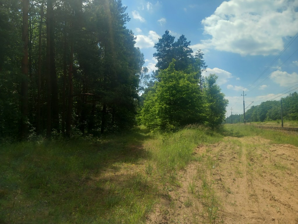 Około 5 kilometrów prze Iławą budowana trasa rowerowa się kończy i znowu mamy podobne widoki jak na odcinku Tama Brodzka – Jajkowo. Czyli dżungla, las, drzewa i jeszcze jakieś zielone gałęzie. Tu również, podobnie jak na początku możemy jeszcze spotkać kilka słupków hektometrycznych. Ostatni po prawej stronie (37,7 km) nie wytrzymał jednak próby czasu i jest przewrócony. Co ostatecznie jest dobrym rozwiązaniem, przez to stanowi punkt orientacyjny, zwłaszcza, że zaraz za nim docieramy do linii kolejowej nr 353. Ostatnie ponad dwa kilometry naszej trasy przebiegało wzdłuż niej, aż do stacji w Iławie. Jednak obecnie wędrówka tam jest znacznie utrudniona, gdyż piasek jest miękki. Możemy wybrać jedną z wielu równoległych do torów ścieżek biegnących w odległości kilkudziesięciu metrów. Ja oczywiście poszedłem tym miękkim piaskiem 😀