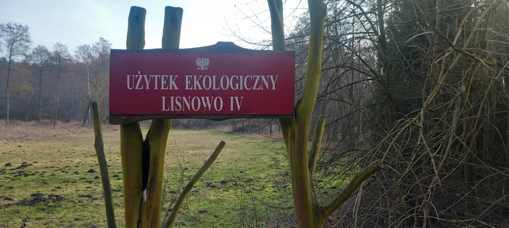 Wędrując dalej w kierunku północnym napotykamy na dwa użytki ekologiczne: Lisnowo III i Lisnowo IV. Ogólnie jest ich sześć, ale na dzisiejszej trasie mijamy tylko te dwa. Wkrótce docieramy do kolejnego skrzyżowania i od tego momentu będziemy szli drogą nieoznakowaną żadnym szlakiem. Skręcamy w prawo w asfaltową drogę pod górkę. Znajduje się tam miejscowość Lisnowo-Zamek, jednak nie ma tam żadnego zamku, prawdopodobnie został kiedyś zburzony albo zniknął w inny nieznany mi sposób.
