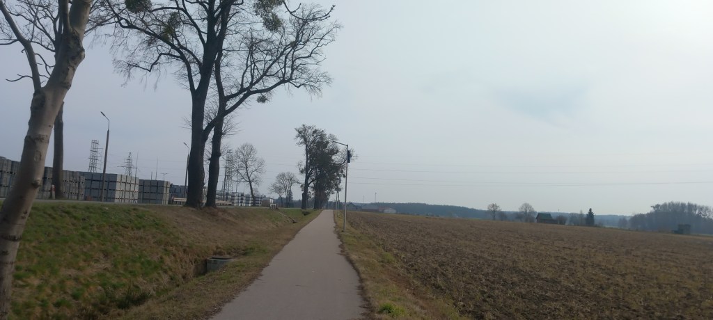 Docieramy do centrum miasta/wsi i kierujemy się drogą wojewódzką numer 538 na wschód w kierunku wspomnianych już Bielic. Ktoś by pomyślał: „ehhh, znowu główna droga, znowu będzie asfalt..”. A tu miłe zaskoczenie. Po prawej stronie szosy prowadzi elegancka ścieżka rowerowa. Także te 3 kilometry przechodzimy w dosyć przyzwoitych warunkach.