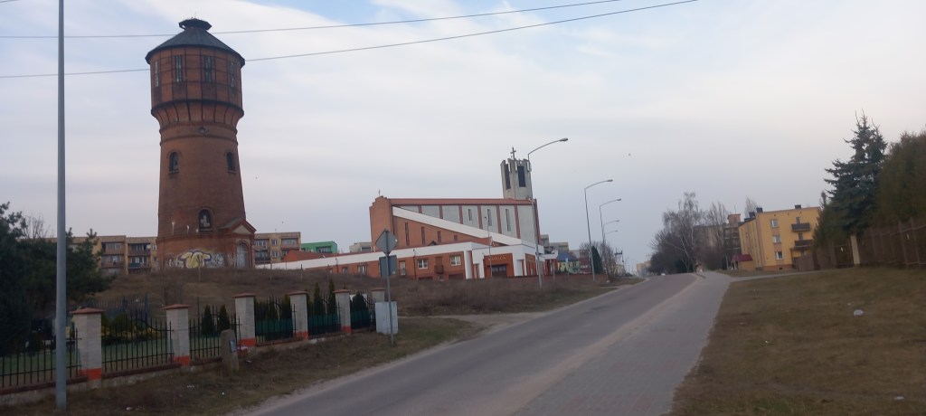Wracamy do głównej drogi. Wędrujemy dalej w kierunku północnym, mniej więcej półtora kilometra. Tam skręcamy w prawo, gdzie po chwili docieramy do Leśnictwa Karaś. Oczywiście jak leśniczówka, to i las. Od tego momentu możemy wybrać kilka opcji, każdą dotrzemy do naszego celu czyli do Iławy, a konkretnie do dworca PKP. Ja osobiście wybrałem trasę jak na mapce. Po drodze napotkałem wieżę ciśnień (tym razem nie kolejową) oraz kościół pod wezwaniem Św. Brata Alberta.