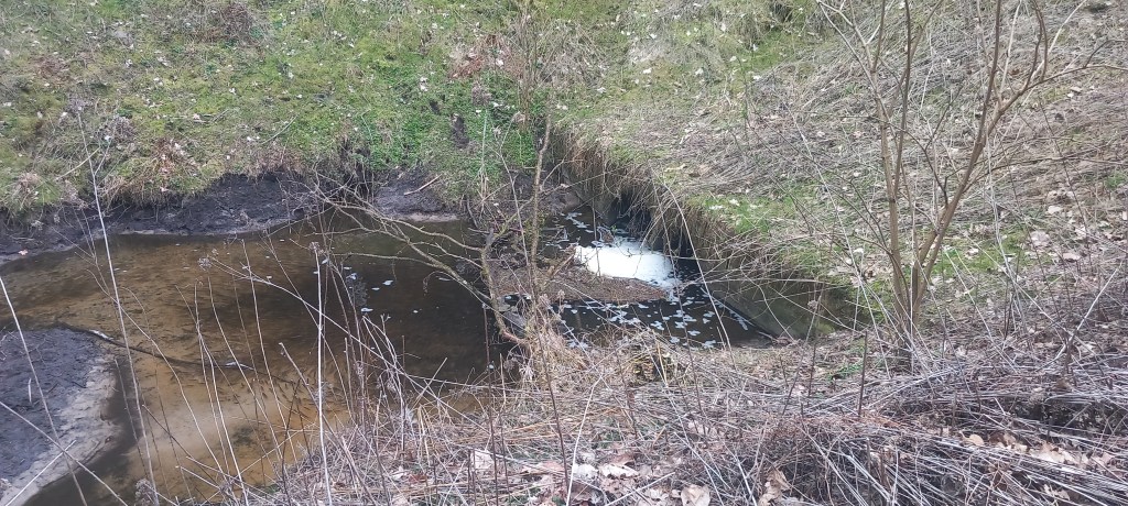 Pod prąd biegu strumienia docieramy do miejsca, gdzie wypływa on z ziemi, tam spotkałem też sporą ławicę rybek, które prawdopodobnie przypłynęły tu na tarło. Po dalszych kilkuset metrach docieramy do Godziszki. Jeśli ktoś kiedyś szedł na pielgrzymkę do Wardęgowa, to zna dobrze tę miejscowość, bo tu zawsze jest postój na kanapeczki i inne pierdółki.