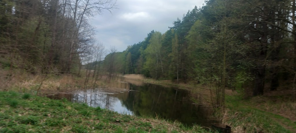 Póki co nie mamy zbyt dużo tej „cywilizacji”. Jedynie las, drzewa i inne takie. Po jakimś czasie mijamy króciutki wąwozik, a po lewej stronie również pojawia się woda. Jest to jezioro Rakowickie. Nie mylić z ulicą Rakowiecką w Warszawie. Nazwa bierze się od wsi Rakowice. Jest to również przystanek kolejowy na linii nr 9 Gdańsk – Warszawa (kolejny cytat z innego filmu: „Ruch jak widzę spory? A tak spory, dziękować”). Niedługo po jeziorku przechodzimy pod torami wymienionej wyżej linii. Sama stacja zostaje z boku, ale wieś mijamy. Co prawda nie przechodzimy przez ścisłe jej centrum, ale zawsze coś.