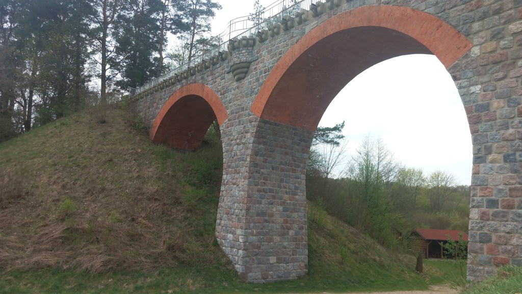 Jednak dla mnie najciekawsze jest to co za końmi, czyli zabytkowy wiadukt na dawnej linii kolejowej z Turzy Wielkiej do Samborowa. Same tory zostały zaorane (czytaj: wykradzione) jeszcze w trakcie drugiej wojny światowej przez naszych przyjaciół zza wschodniej granicy, z resztą podobnie jak większość w północno-wschodniej Polsce. Oczywiście ślad i nasypy pozostały. W związku z tym, że to już baaardzo dawna historia, linia nawet nie posiadała swojego numeru. A sam wiadukt jest czynny do dziś i jako zabytek został nawet odrestaurowany. Można śmiało przejść się nim, na drugiej stronie znajdują się nawet tablice informacyjne oraz miesjce parkingowo-postojowe.