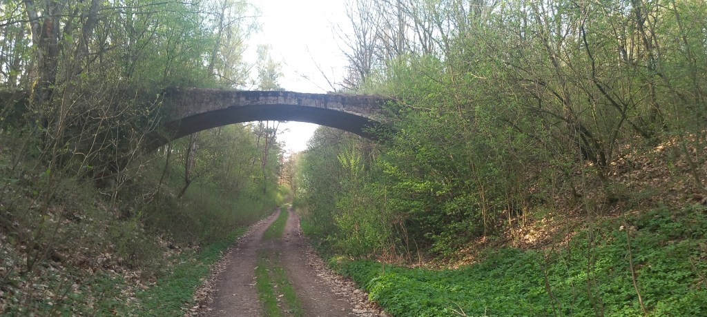 Za mostem po prawej stronie mijamy pozostałości po dawnym młynie, za którym główna droga skręca gwałtownie w lewo, a my wybieramy wąską ścieżkę pod górkę w prawo. Po chwili docieramy do czarnego szlaku, który będzie nam towarzyszył przez dłuższy czas. Obieramy kierunek na wschód (cytując znany polski film: „Kierunek wschód, to musi być jakaś cywilizacja!”). No i będzie, będzie. Ale nie uprzedzajmy faktów.