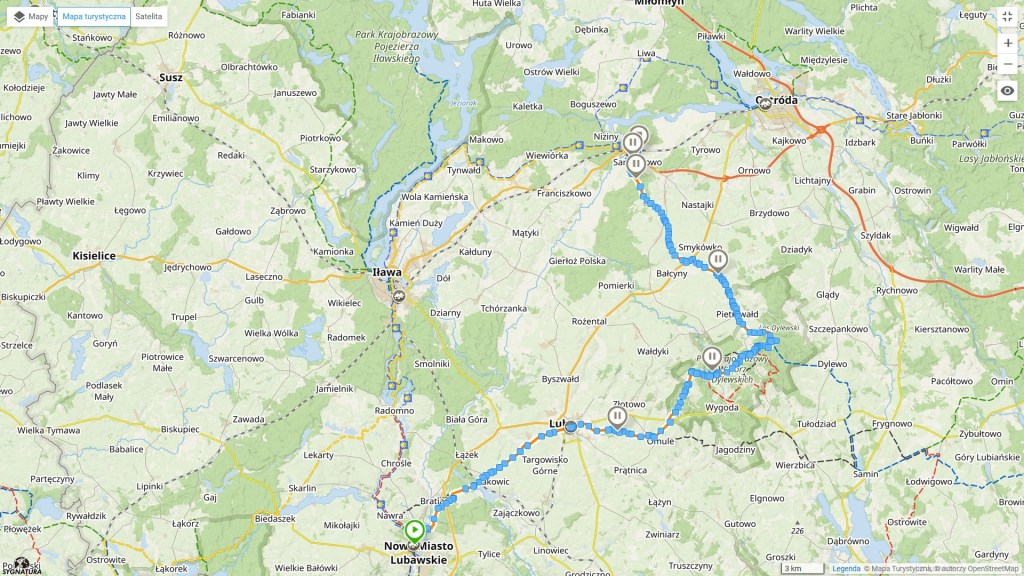 Jeśli widzimy w tytule NML (Nowe Miasto Lubawskie, byliśmy tu już kiedyś podczas wycieczki do Piaseczna (https://maronwedruje.com/2023/07/31/wokol-komina-5-nml-lidzbark-piaseczno/) oraz do Iławy (https://maronwedruje.com/2024/06/16/wokol-komina-12-sladem-dawnej-linii-kolejowej-nr-251-do-ilawy/), to wiadomo, że wycieczka musi odbyć się w dzień powszedni, bo tylko wtedy jeżdżą tam autobusy. Znaczy w weekendy też jeżdżą, ale pierwszy jest dopiero koło 10, więc trochę późno na całodzienne łażenie.