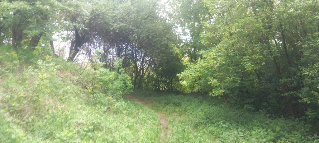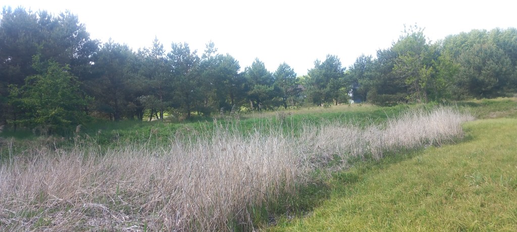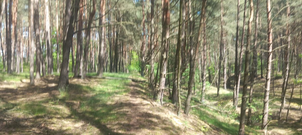 Po przerwie przyszła pora na na najtrudniejszą część trasy. Mianowicie powrót bezdrożami do „cywilizacji” czyli do ścieżki. Ja trochę tu pokrążyłem robiąc serpentyny i wywijasy, ale ostatecznie udało mi się dotrzeć do Komina. A nie, czekaj, do Kominów. Czyli wycieczka Wokół Komina przez Kominy 😀 Przy okazji potwierdziła się stara prawda kolejowa. Nieważne czy linia została zaorana rok, czy 80 lat temu, starotorze zawsze pozostanie widoczne, nawet zarośnięte. Tak jak w tym przypadku. Charakterystyczny nasyp widać z daleka w lesie, o polu nie wspominając. A jak nie ma nasypu, to i tak widać. No i jest jeszcze jeden znak świadczący o dawnym przebiegu kolei. Chodzi tu oczywiście o stare fundamenty słupów telekomunikacji. W tym przypadku owe nie występują, ale nie da rady zgubić zarysu torowiska.