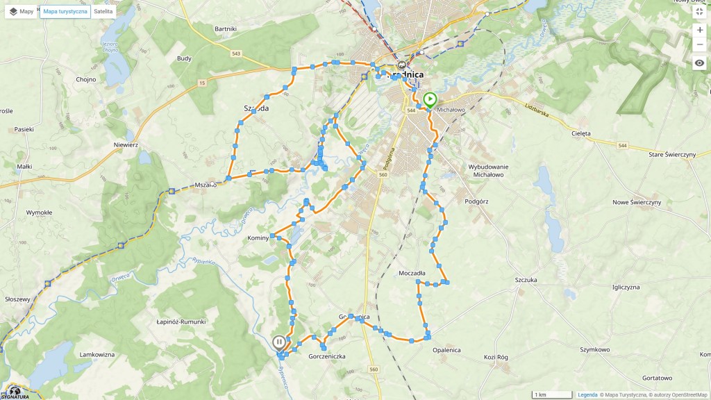 Łączna długość trasy wyniosła skromne 33 km, ale jak już wspomniałem we wstępie, była to opcja na brak czasu i pośpiech. Fajny pomysł na rower, oczywiście pomijając moje bezdroża i wertepy. Współczynnik asfaltyzacji wyniósł 34,04 %. Czyli patrząc na statystyki, mniej więcej w połowie stawki 😀