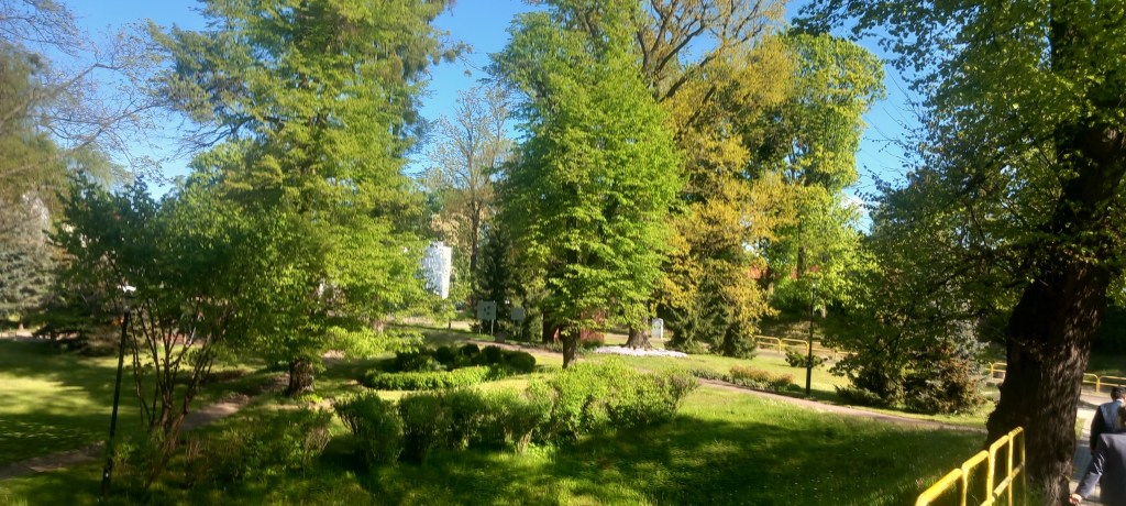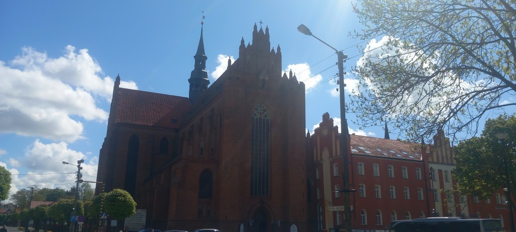Ze wsi wychodzimy ulicą Pelplińską, która zgodnie z nazwą prowadzi do…. Pelplina, ale o tym później. Przechodzimy kolejnym dzisiaj wiaduktem pod torami, na tym asfaltowym fragmencie idzie z nami szlak koloru błękitnego. Zanim dojdziemy do Pelplina mamy jeszcze osadę Janowo i troszkę większą wieś Rożental, gdzie znajduje się spora ferma drobiu. Wchodzimy do miasta ulicą Kościuszki. Możemy oczywiście iść cały czas prosto w kierunku stacji kolejowej, ale warto skręcić w ulice Czarnieckiego i potem Biskupa Dominika, żeby przyjrzeć się miejscowym atrakcjom. A są to: pałac biskupi wraz z ogrodem, Wyższe Seminarium Duchowne oraz Katedra pw. Wniebowzięcia Najświętszej Maryi Panny. Niedaleko tego ostatniego budynku można też zaopatrzyć się w pamiątki typu magnes i temu podobne. Na przeciwko mamy również drugą świątynię, to jest kościół pw. Bożego Ciała wraz z cmentarzem.