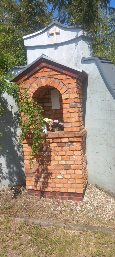 Po kolejnych kilku kilometrach przecinamy je (nie wiem już który raz dzisiaj, ale chyba czwarty) i polną ścieżką docieramy do zabudowań wsi Rajkowy. Tam skręcamy w prawo i zbliżamy się do Subków. Tu na chwilę się zatrzymujemy, bo jak ktoś mnie zna, to wie, że jest to miejsce bardzo bliskie mojemu sercu. Zatem chwila na kontemplację i modlitwę. Można również zapalić znicza [*]
