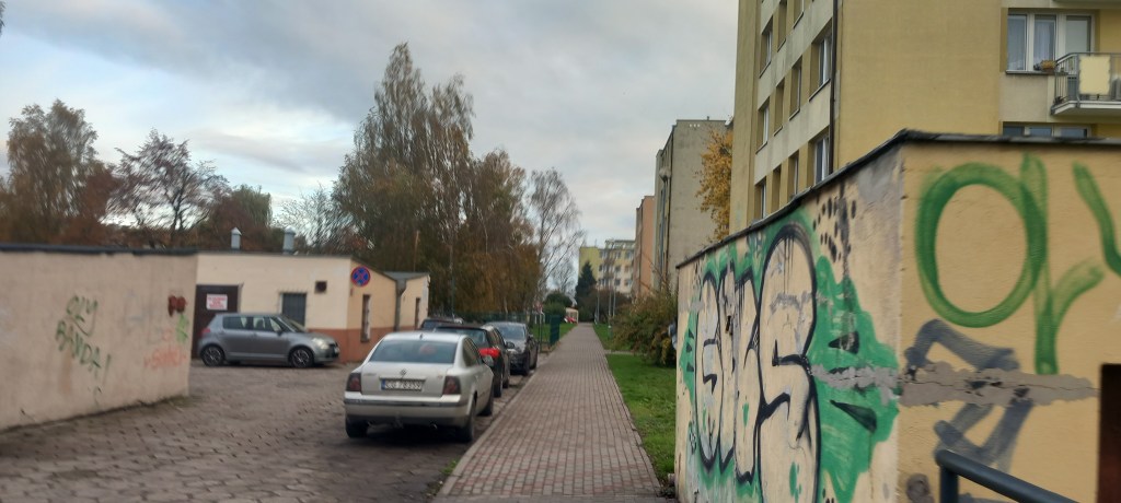 W każdym bądź razie bynajmniej wysiadamy na słynnym popeerelowskim relikcie kultury, czyli na sławetnym głównym dworcu kolejowym. Kto chociaż raz się tam przesiadał, to wie o czym mówię. Teoretycznie planowany jest remont obiektu, ale w praktyce ani widu ani słychu. Ze stacji musimy dostać się na rynek, bo tam zaczyna się szlak. Możemy zrobić to na kilka sposobów. Od dworca wzdłuż torów tramwajowych ulicą Dworcową, następnie Hallera, Aleją 23 Stycznia oraz Szewską. Ta trasa jest troszkę dłuższa, ale na pewno się nie zgubimy. Ja oczywiście poszedłem inaczej. Prosto ulicą Wilsona między blokami do Rapackiego (jak widać w Grudziądzu nie słyszeli o ustawie o dekomunizacji), kawałeczek również Hallera, tylko troszkę bardziej na północ; następnie skręcamy w lewo w Mickiewicza, którą to bezpośrednio docieramy do głównego placu w mieście.
