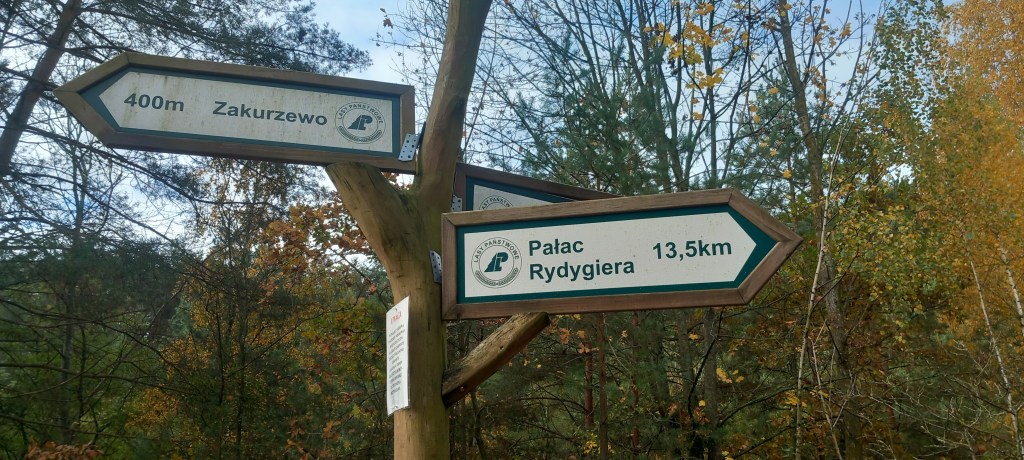 Ale wracamy do meritum. Czyli do wału przeciwpowodziowego. Tuż przed samymi górami, skręca on w prawo na wschód. Przedtem jednak pokonujemy jeden z ostatnich mostów nad rzeką Osą, która to zaraz obok wpada do Wisły. Za mostem ponownie skręcamy na północ i docieramy do Zakurzewa. Za wsią znowu wchodzimy pod górkę (to już właściwe Góry Łosiowe). Zaczyna się tam również krótki żółty szlak, który towarzyszy nam przez kilkaset metrów. Są tam też drogowskazy do punktu widokowego. Nie muszę chyba wspominać, że z moim szczęściem, czy raczej nieszczęściem akurat był on zamknięty z powodu budowy platformy. Także doszło kolejne miejsce do odwiedzenia w przyszłym roku 😀