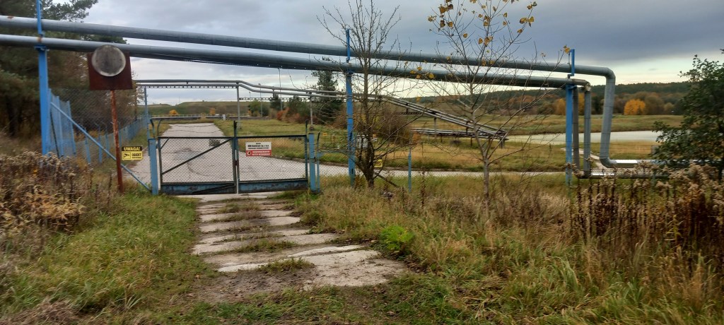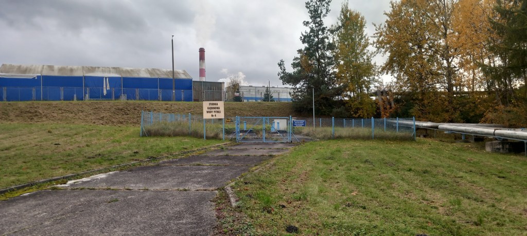 Ale bez wnikania w szczegóły, po dojściu do płotu z rurami, postanowiłem na ślepo iść wzdłuż niego na północ. Stwierdziłem, że gdzieś kiedyś wyjdę. No i miałem więcej szczęścia niż rozumu, bo płot skończył się za niecałe pół kilometra. I dotarłem do asfaltowej szosy. Jednak to jeszcze nie była właściwa droga publiczna, tylko dojazdowa do zakładu, więc praktycznie ruch samochodów tu nie istniał. Jedyne auto jakie tu napotkałem, to służbowy czarny pick up ochrony (to również świadczy o ogromie zakładu, że obchód trzeba robić samochodem, a nie z buta). Na szczęście pan ochroniarz okazał się bardzo miły i troskliwy, sam zatrzymał się przy mnie i zapytał czy mam jakiś problem. Ja mówię, że owszem, że troszkę zabłądziłem i chce dotrzeć do miasta. Odpowiedział mi, że powinienem iść dalej prosto w tamtym kierunku, co też uczyniłem. I po około kilometrze zobaczyłem przystanek komunikacji miejskiej. Zatem cywilizacja! Zaraz było też skrzyżowanie, a za nim wrócił normalny ruch pojazdów.