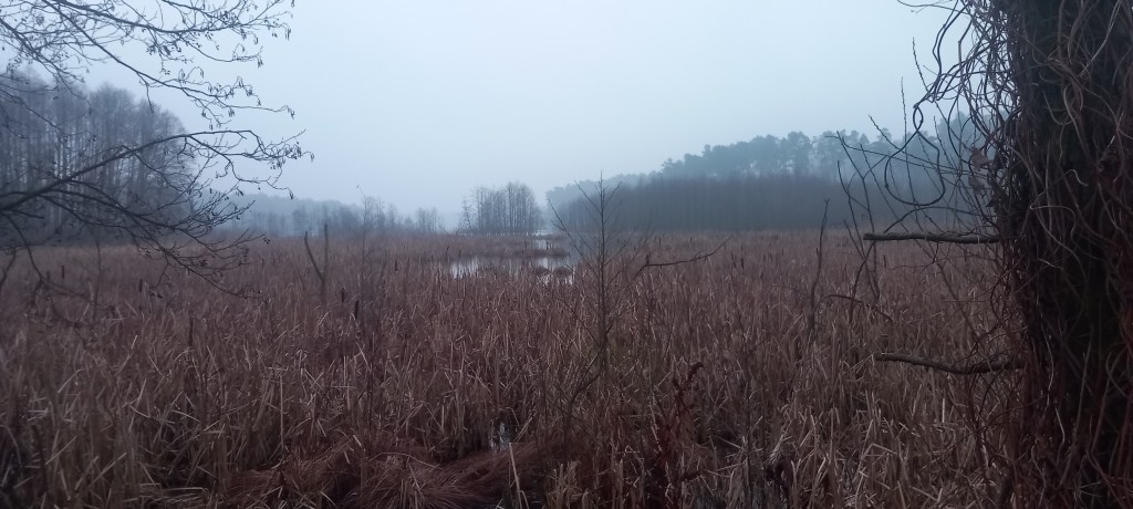 Członu „deszczowe” chyba nie trzeba wyjaśniać. Co tu dużo gadać, prawie całą drogę występowały przelotne opady. Nie że taka ulewa czy nawałnica, tylko taki kapuśniaczek. Co trochę potrafi zdenerwować, bo trzeba co chwilę przecierać telefon; a ten pod wpływem kropel deszczu żyje własnym życiem i uruchamiać, albo wyłączać różne dziwne aplikacje, o których istnieniu przy słonecznej pogodzie nigdy bym nawet nie wiedział 😀 Ale ta mżawka również dodaje swoistego charakteru filmom i zdjęciom, podobnie jak mgła z poprzedniej wycieczki (https://maronwedruje.com/2025/12/13/20-walka-z-ostrym-cieniem-mgly-czyli-z-gorzna-do-rybna-pomorskiego/).