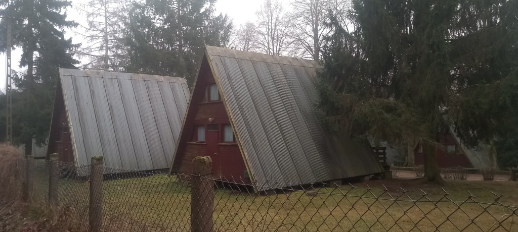 Na wspomnianym skrzyżowaniu droga w lewo prowadzi do Pokrzydowa, a my skręcamy w prawo wraz ze szlakiem. Po kolejnych kilkuset metrach po prawej stronie widzimy następny ośrodek. Tym razem jest to Stepol, czyli dawny ośrodek Polmowski. Kiedyś istniał jeszcze między tymi dwoma ośrodek kopalniany. Tak, tu nie ma mowy o pomyłce. Kopalniany. Ale skąd tu kopalnia, przecież wungiel to się na Śląsku wydobywa. To prawda. Ale górnicy zechcieli sobie za te czternaste i piętnaste pensje i inne „pod gruszą” wypocząć z dala od zgiełku, hałasu i pyłu. To wybrali do tego nasze pojezierze. Oczywiście, jak nie trudno się domyślić, kopalnia już dawno upadła, a z nią ośrodek. Ale podobno można na tym terenie dalej uprawiać urbex. Ja akurat niestety musiałem z tego zrezygnować, bo pogoda była jaka była (czytaj: deszczowo i wietrznie). Ale pewnie jeszcze kiedyś będzie okazja.