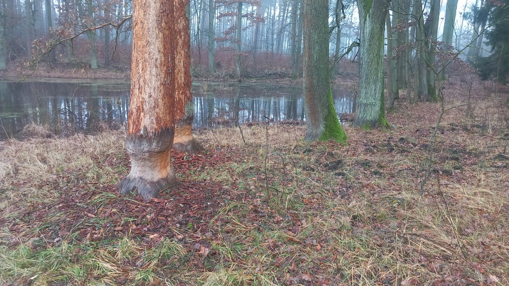 Jeśli chodzi o „Bobrowanko”, to jest to mój czysty neologizm. Nie należy jednak mylić tego słowa z podbrodnicką miejscowością Bobrowiska, bo to zupełnie gdzie indziej. No może, nie zupełnie, bo jednak będziemy przechodzić kilka kilometrów od tej wsi, ale o tym później. A „bobrowanko” oznacza po prostu liczne napotkane po drodze ślady żerowania bobrów. Czyli tak zwane zgryzy. Nie mylić ze zgrzytami.