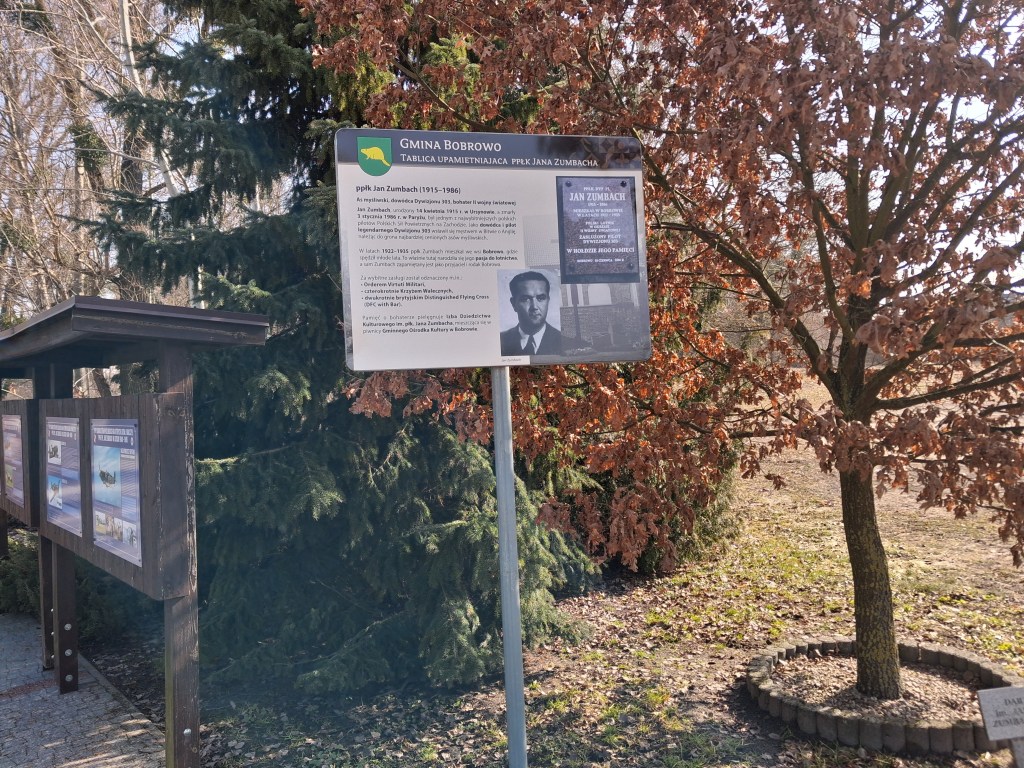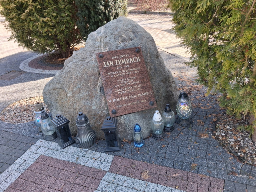 Tak że od tego momentu towarzyszy nam czerwień wraz z muszelką. Przechodzimy przez wspomniane skrzyżowanie i na kolejnym skręcamy w lewo. Po prawej stronie mamy skwer poświęcony Janowi Zumbachowi. Kim był Jan Zumbach? Polecam uzupełnić braki. A czemu akurat w tym miejscu takie rzeczy? Bo jak można wyczytać w Internetach, ów polski pilot mieszkał tutaj w latach 1922-1935. Także spędził tu sporo młodzieńczych lat.