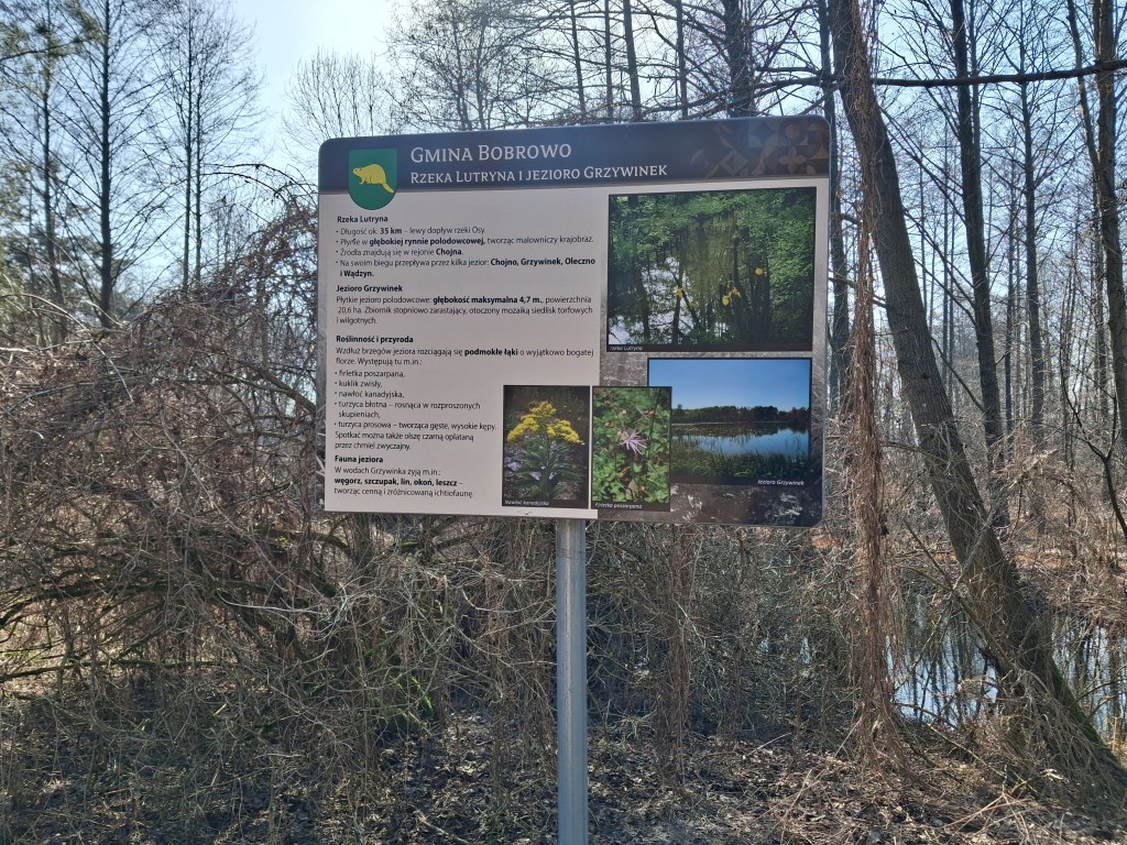 Po zejściu z wieży wracamy na szlak koloru krwi i wędrując na południe docieramy do kolejnej dużej wsi gminnej na naszej trasie, czyli do Bobrowa. Podobnie jak w przypadku Kruszynek – Rumunek, wiadomo skąd wzięła się nazwa (chociaż ja osobiście żadnego bobra nie widziałem). Warto jeszcze wspomnieć, że między Wądzyniem, a Bobrowem po prawej stronie (chyba że idziemy z Bobrowa do Wądzynia, to po lewej) znajduje się jezioro o wdzięcznej nazwie… Marek. Wypływa z niego również rzeczka, nazwana tak samo. Tutaj nie mam pojęcia czym inspirował się Pan „Nazywacz”.