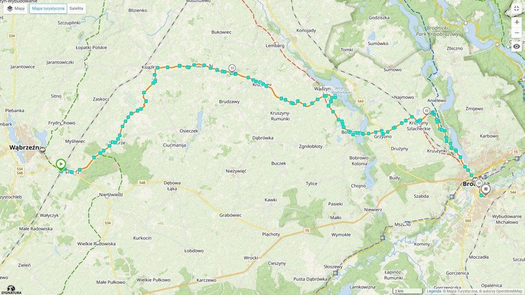 No ale, ja jak zawsze gadu gadu, pitu pitu, a tu treść czeka. W związku z taką aurą, ja też poczułem chęć rozpoczęcia sezonu 2026, co też uczyniłem. Pozostało pytanie gdzie się wybrać na początek? Najpierw chciałem zacząć od Książek, ale potem jednak postawiłem na Wąbrzeźno. Czemu akurat te dwie miejscowości. Jak ktoś dużo jeździ pociągiem do Torunia, to wie, że od Jabłonowa są to dwie pierwsze stacje w tamtym kierunku. Dalej jest Zieleń (w której byłem pod koniec zeszłego roku, tylko jeszcze wpis nie ukazał się ze względu na brak weny :o. Ale nadrobimy to!). Kolejną stację jest Kowalewo Pomorskie, tu nie trzeba przypominać, byliśmy kilka razy, zwłaszcza podczas przedzierania się starotorzem linii nr 209 (https://maronwedruje.com/2025/07/19/17-sladem-dawnej-linii-kolejowej-nr-209-do-kowalewa/). Więc pozostało Wąbrzeźno i Książki.